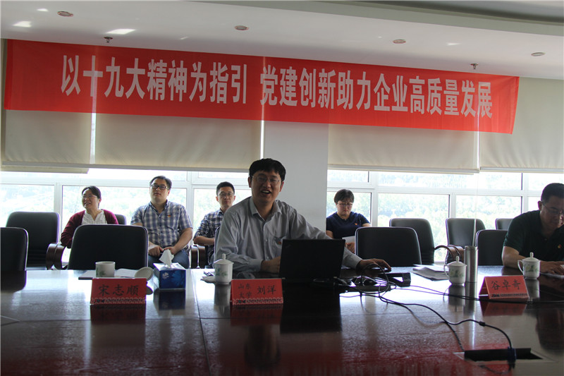 為深入學(xué)習(xí)貫徹黨的十九大精神和濟南市機關(guān)深入開展“堅持以人民為中心的發(fā)展思想”教育活動動員部署會議精神,進一步聯(lián)系企業(yè)實際,把黨的十九大精神落實到工作各個方面、貫穿到重點工程建設(shè)、轉(zhuǎn)型升級、創(chuàng)新發(fā)展的全過程,提升公司新形勢下企業(yè)黨建工作和思想政治工作的能力和水平,持續(xù)助力企業(yè)高質(zhì)量發(fā)展,公司黨委于5月21日開展了“以十九大精神為指引,黨建創(chuàng)新助力企業(yè)高質(zhì)量發(fā)展”主題黨課暨2019年公司黨支部書記培訓(xùn),并特邀山東大學(xué)黨內(nèi)法治研究中心執(zhí)行主任、碩士生導(dǎo)師劉洋教授作了題為《以十九大精神為指導(dǎo),企業(yè)黨建創(chuàng)新》的集中黨課,幫助廣大黨員深刻領(lǐng)會習(xí)近平新時代中國特色社會主義思想的豐富內(nèi)涵和對企業(yè)黨建創(chuàng)新工作的指導(dǎo)意義。
