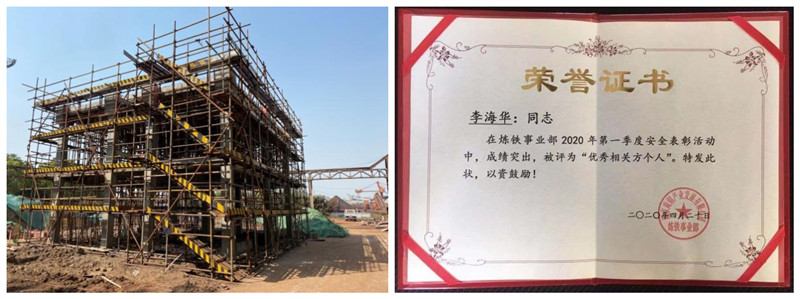 2020年4月19日,江蘇分院總承包的“南京金江冶金爐料有限公司原料廠一混勻增設(shè)布袋除塵器項目”土建主體工程順利封頂,項目經(jīng)理李海華榮獲南鋼集團頒發(fā)的“優(yōu)秀相關(guān)方個人”稱號。