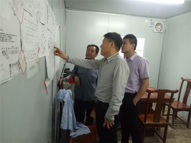 會談之后,宋總到施工現(xiàn)場考察指導高爐公輔項目及污水處理項目工作。在高爐公輔項目施工現(xiàn)場辦公室里,宋總對照著墻上張貼的項目進度計劃及樁基平面圖,詳細了解項目的進展情況,并在考察現(xiàn)場后,認真聽取了項目部對施工進度、質(zhì)量、安全管理的工作匯報,宋總對項目部管理人員的辛勤工作表示了肯定,并針對工程難度大、樁基分包單位力量弱、價格低等存在的困難做出了部署。